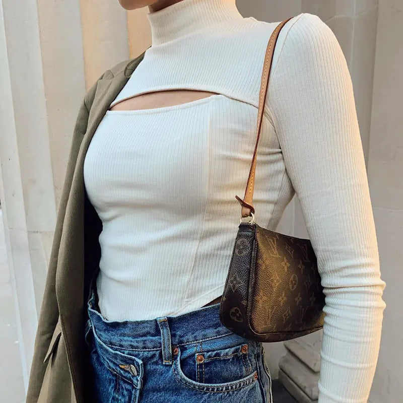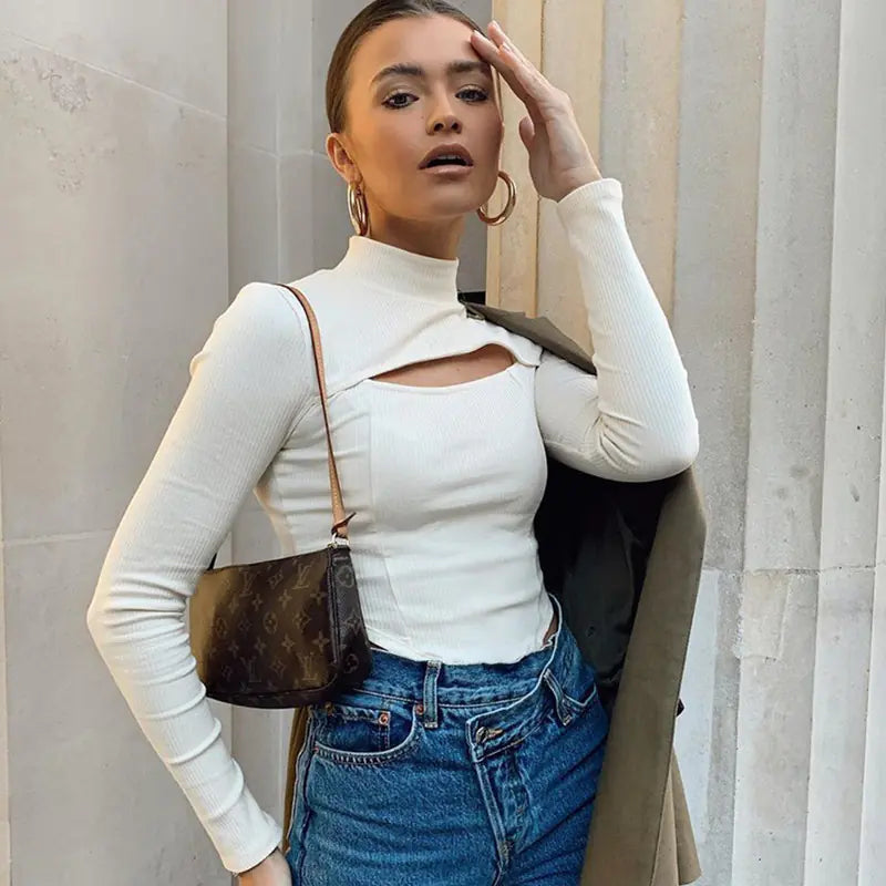Koleksiyonunuza bu önemli parçayı eklemeyi kaçırmayın. Yüksek Yakalı Delikli Uzun Kollu Tişörtümüzle tarzınızı ortaya koyun ve gittiğiniz her yerde dikkatleri üzerinize çekin!
