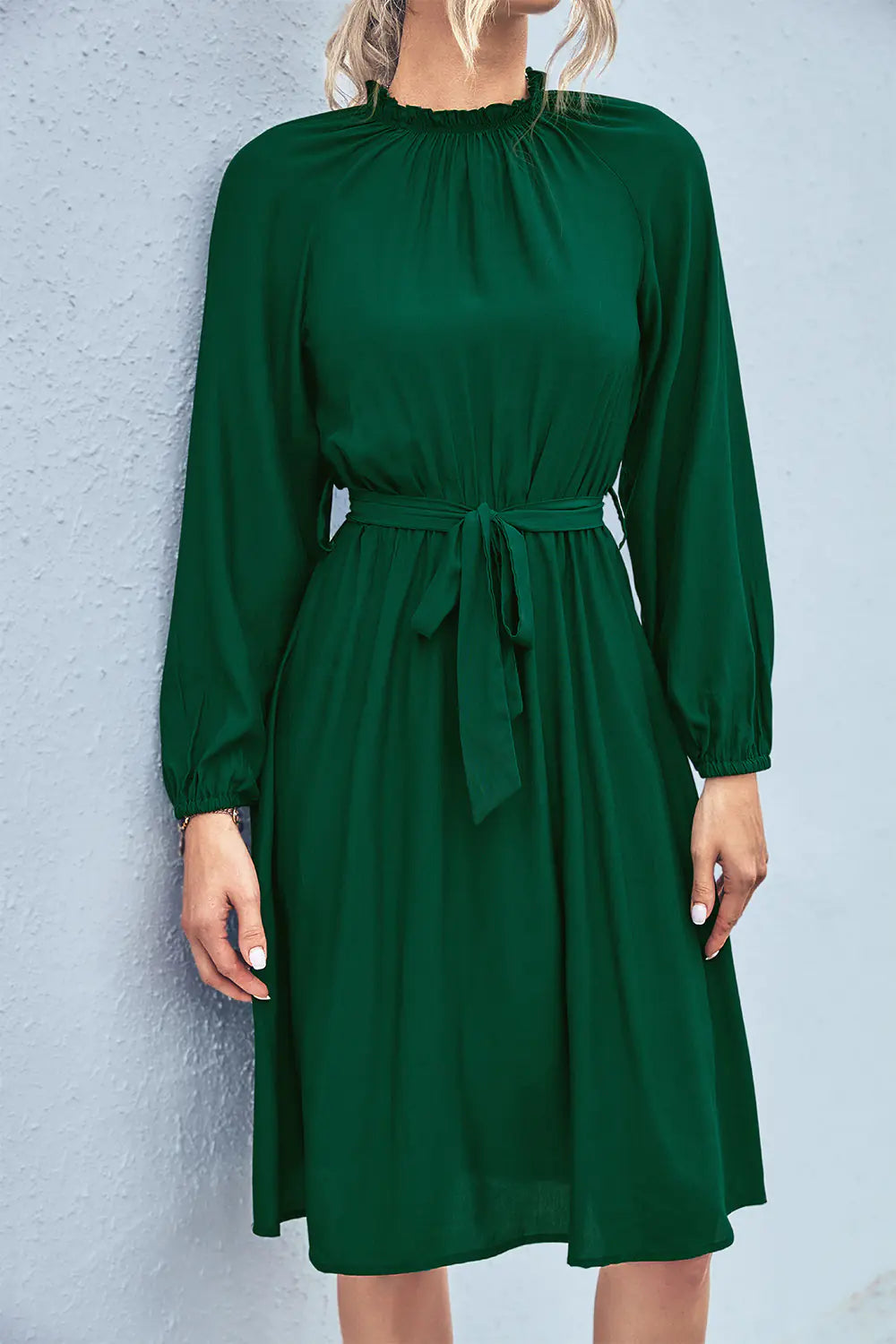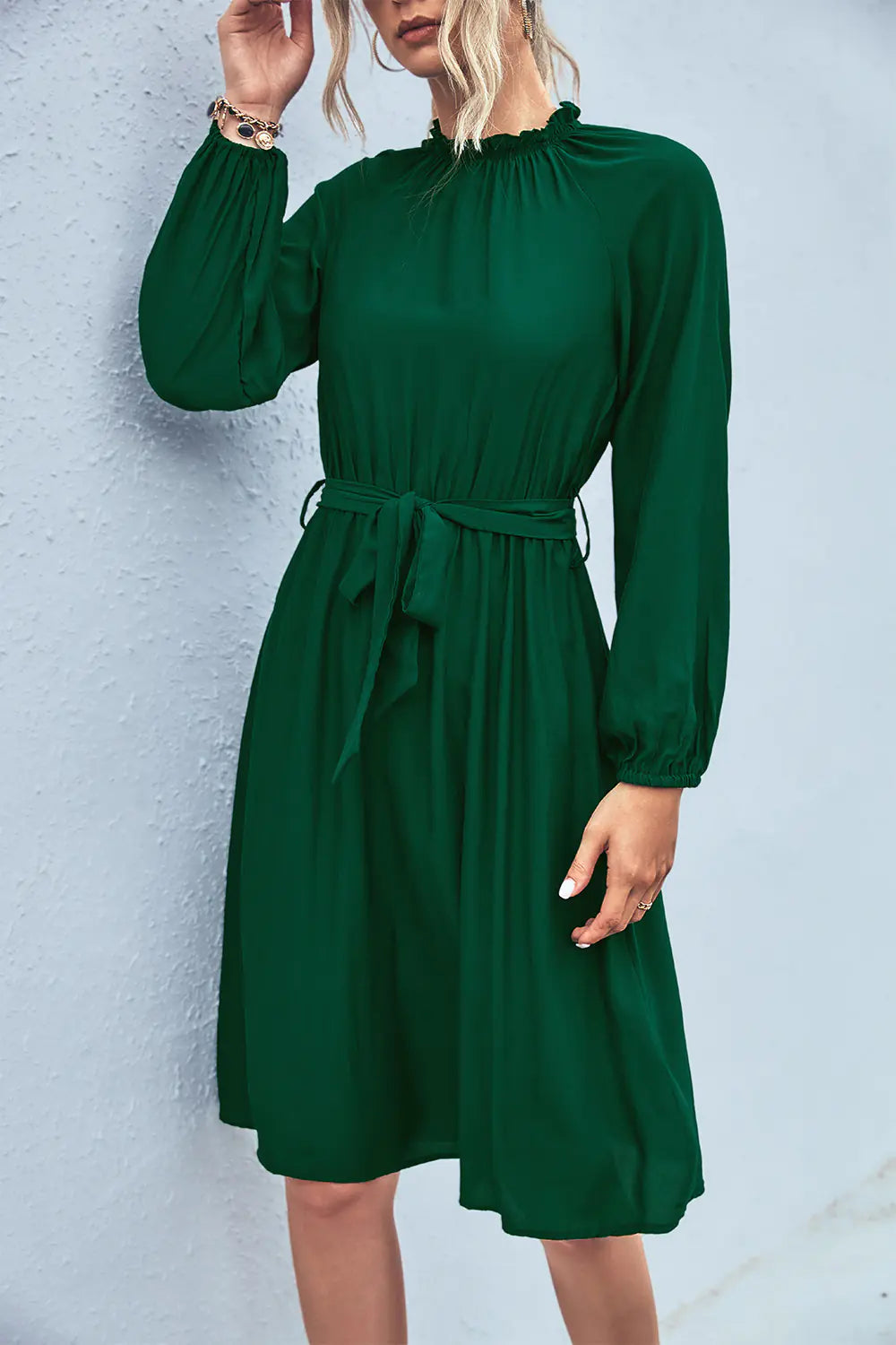 Klasik Düz Renkli Bağcıklı Kollu Elbise