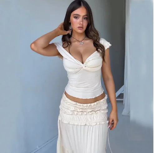 Çeşitli bedenlerde mevcut olan bu takım, vücut tipinize en uygun olanı seçmenize olanak tanır. Üst veya eteği tercih edin, kendi kişisel stilinizi yaratmak için bunları karıştırıp eşleştirebilirsiniz.