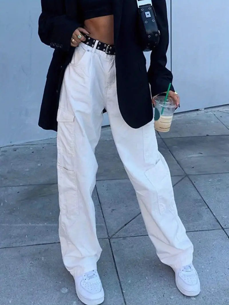 Yüksek Bel Kadın Denim Kot Pantolonlar ve Kargo Pantolonlar