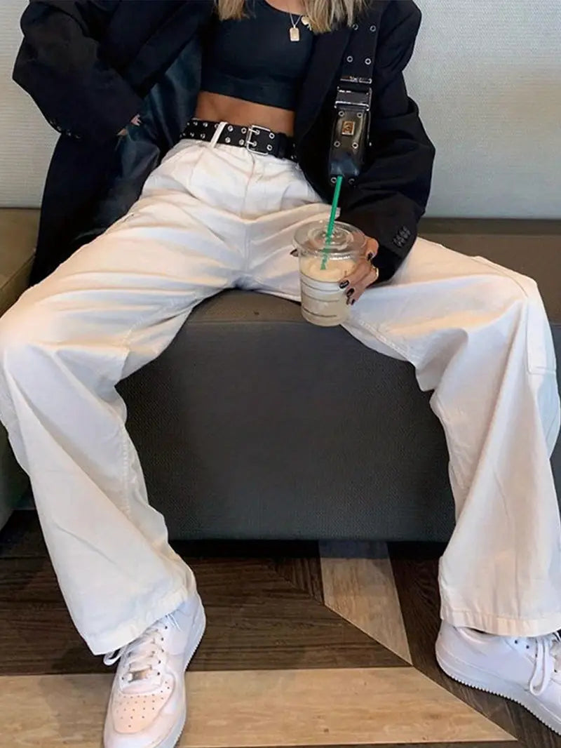 Kadınlar için şık kot pantolon ve kargo pantolon koleksiyonumuzla gardırobunuzu zenginleştirin. Modern kadınlar için mükemmel bir şekilde tasarlanan bu pantolonlar, vücudunuzu güzelleştiren yüksek bel silueti ve rahat kesimi ile dikkat çekiyor. Düz renkleri ve düz paça tasarımı, ofise giderken veya arkadaşlarınızla geçireceğiniz rahat bir gün için herhangi bir üst giysi ile kombinleyebileceğiniz kadar çok yönlüdür.
