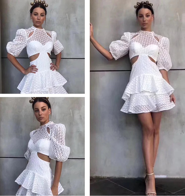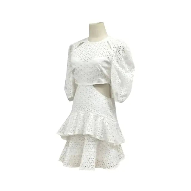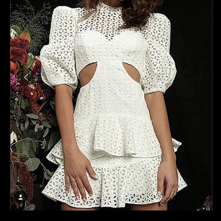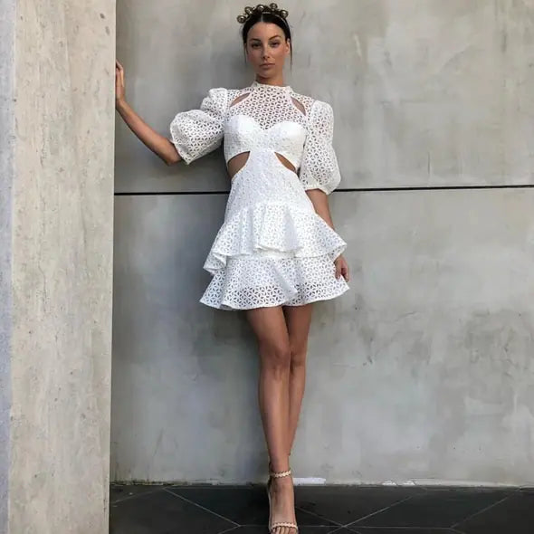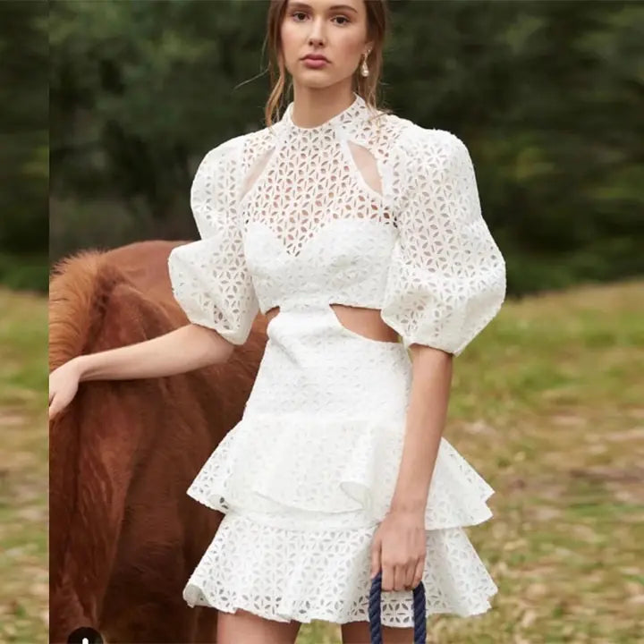 Şık Dantel Puf Kollu Belini Gösteren Dar Kesim Fırfırlı Elbise ile zarafete adım atın. Tatil kaçamakları veya gündelik geziler için mükemmel olan bu elbise, şık tasarımı konfor ve stil ile birleştirir.