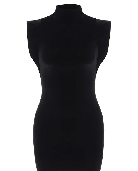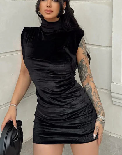 Kadınlar için Omuz Vatkalı Kolsuz Kadife Mini Elbise