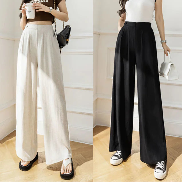 Yazlık Keten Yüksek Bel Pantolon - Bol Kesim Stil