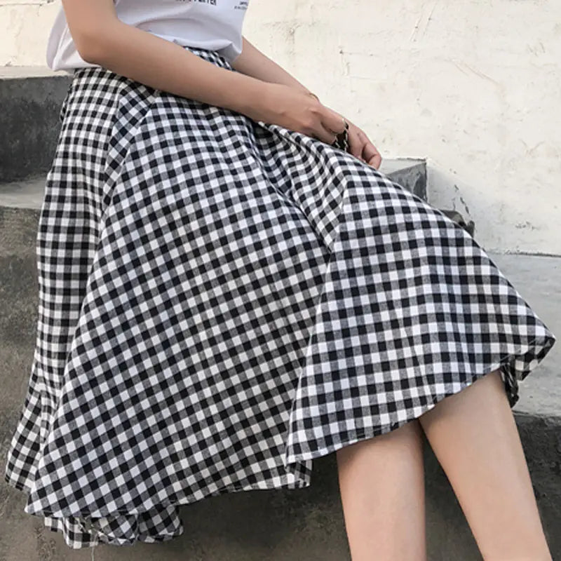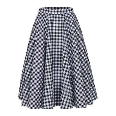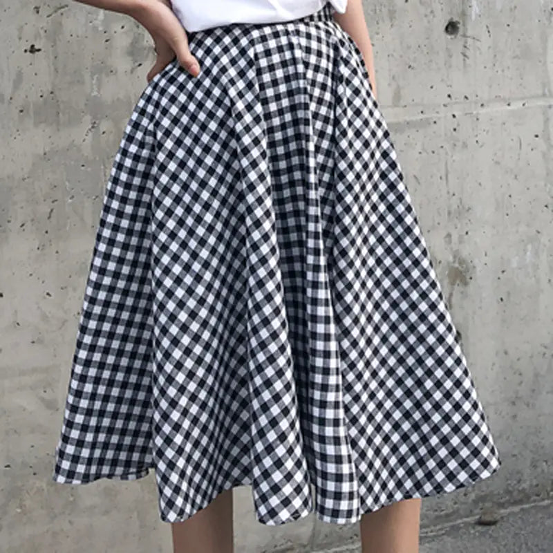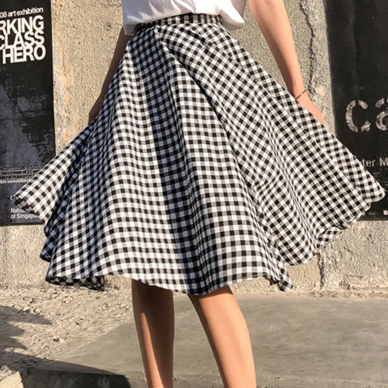 Siyah Beyaz Kareli Midi Etek – Yüksek Bel Pileli Kadın Etek